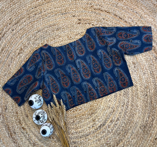 Chic Ajrakh Indigo Square Neck Blouse with Artisan Block Prints