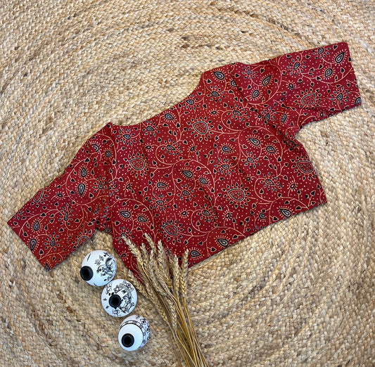 Bold Ajrakh Red Halter neck Blouse with Intricate Prints