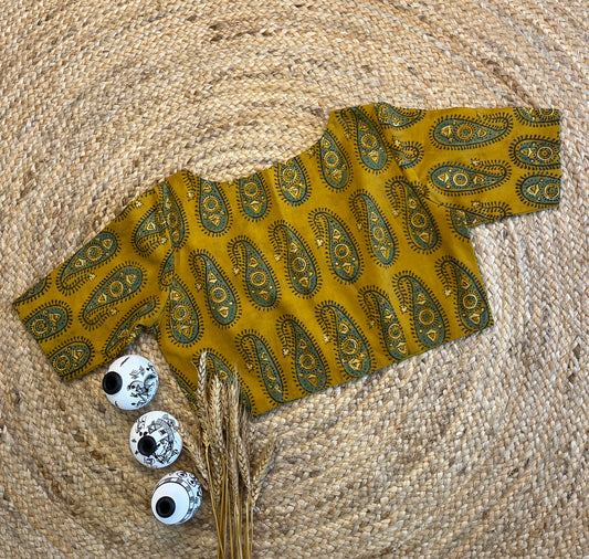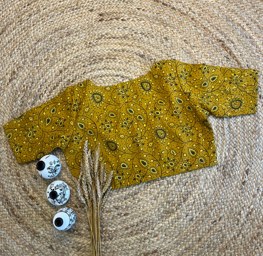 Bright Yellow Ajrakh Printed Blouse with Square Neck