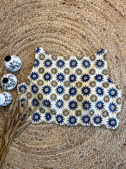 Cotton Bold Ajrakh print cotton strappy blouse in Midnight blue