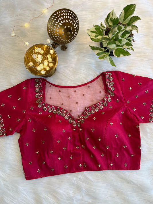 Rani Pink Bridal Blouse with Artisan Threadwork