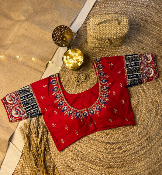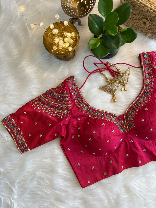 Designer Metallic Red Bridal Blouse with Zardosi Work
