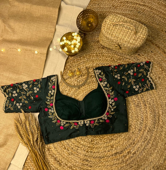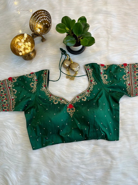 Elegant Handcrafted Bottle Green Bridal Blouse