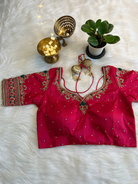 Rani Pink Bridal Zardozi Blouse - Luxurious Raw Silk Fusion for an Unforgettable Wedding