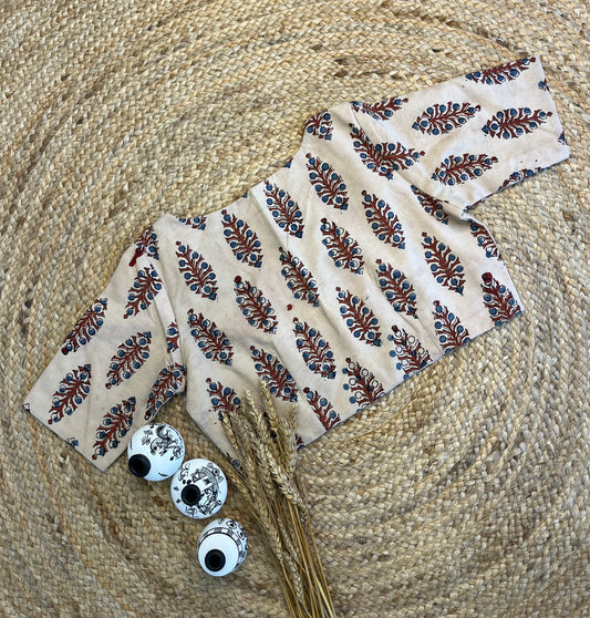 Elegant Off-White Ajrakh Blouse with Square Neck