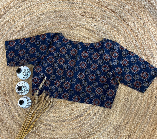 Chic Ajrakh Indigo Square Neck Blouse with Artisan Block Prints