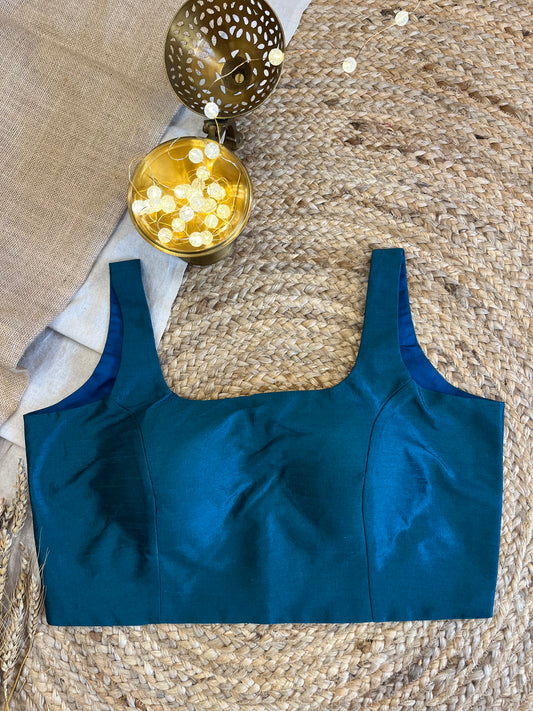 Elegant Ajrakh Blue Square Neck Blouse with Intricate Design