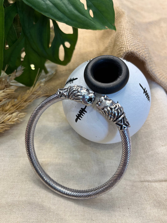 Lion-Head Oxidized Silver Cuff Bracelet