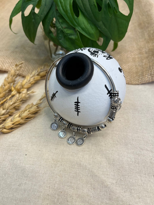 Sold outTribal Charm Silver Bangle