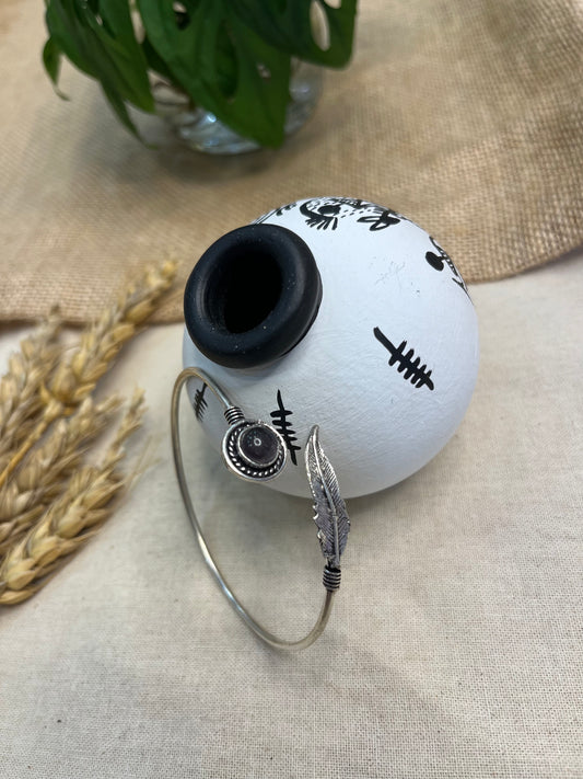 Minimalist Open Cuff Bangle with Black Stone Accent