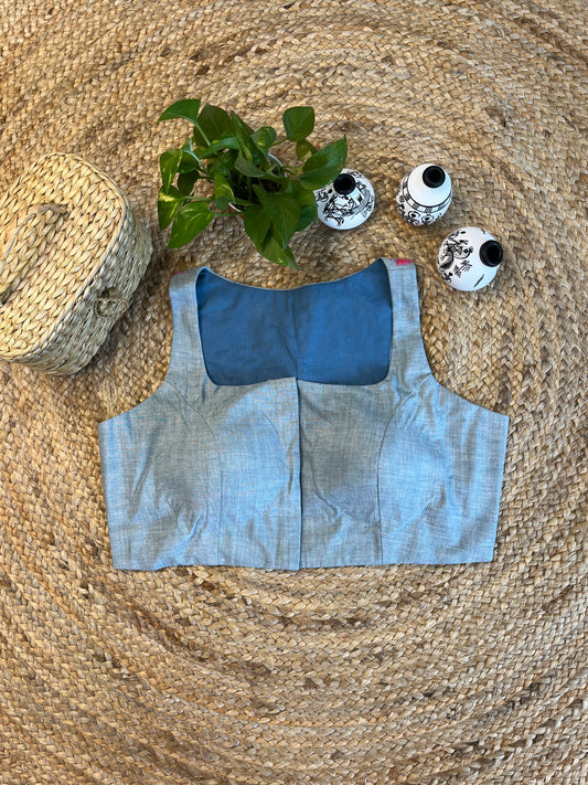 Cotton Pure cotton thread work sleeveless blouse in Blue