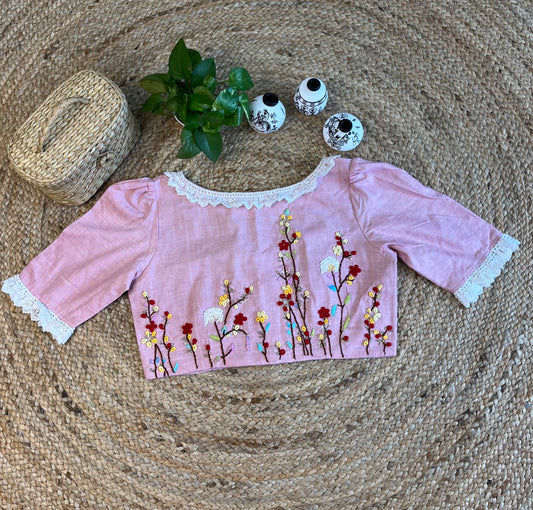 Cotton Pure cotton thread work sleeveless blouse in Baby pink