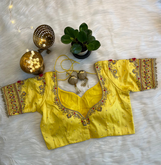 Radiant Yellow Fusion Silk Zardozi Work Blouse