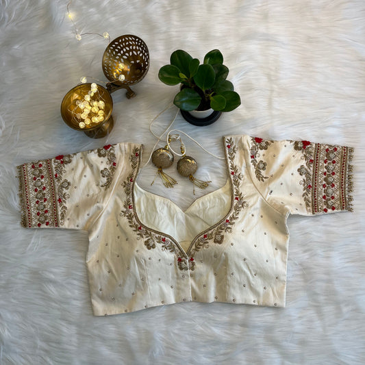 Luxurious Cream White Organza Padded Blouse with Sequins Embroidery – Elegant Designer Wear