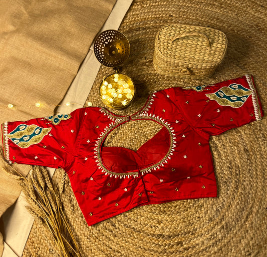 Designer Metallic Red Bridal Blouse with Zardosi Work