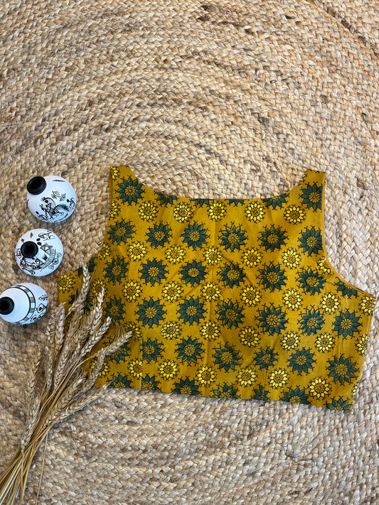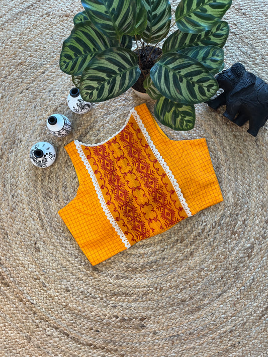 Bright Yellow Front-Open Ajrakh Blouse with Vibrant Artistry