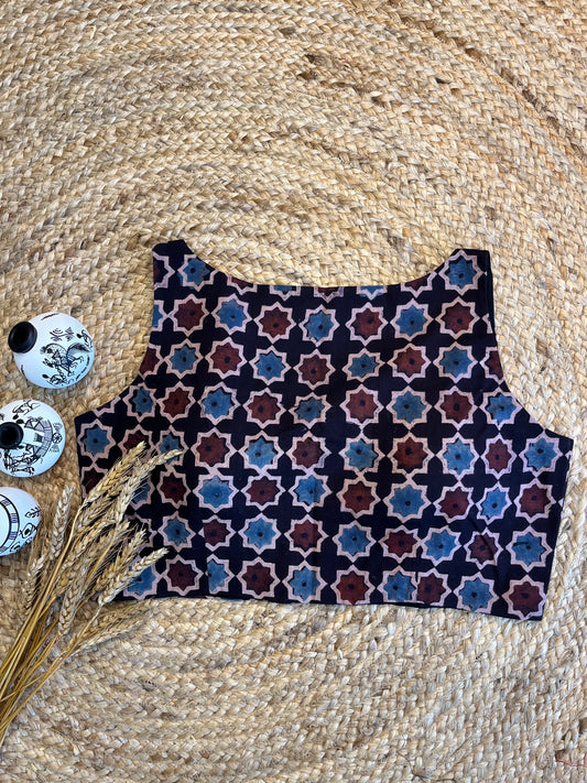 Front-Open Mixed Color Ajrakh Blouse with Artisan Charm