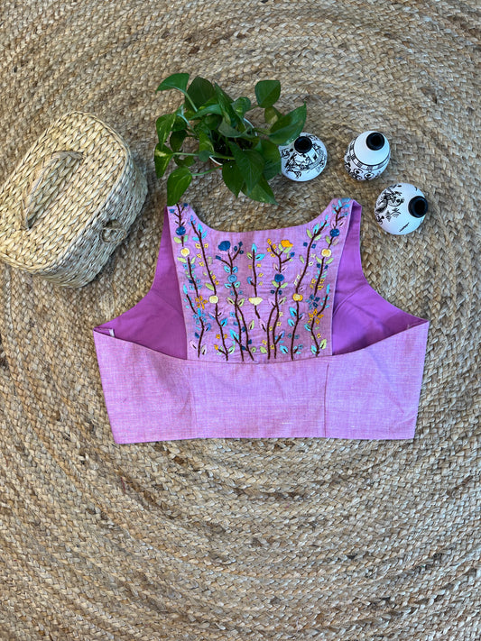 Cotton Pure cotton thread work sleeveless blouse in Mauve pink
