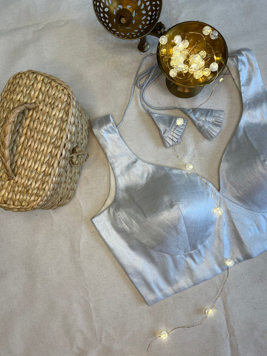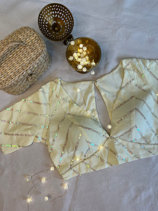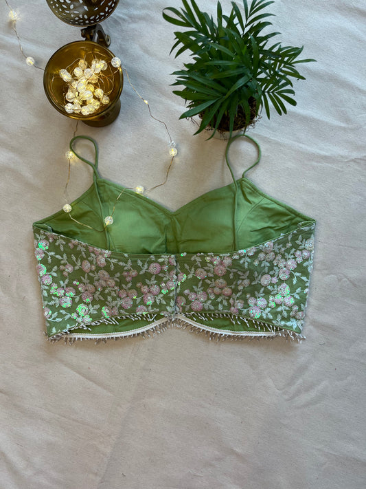 Pista Green Noodle Strap Blouse in Elegant Net Fabric with Sequins Embroidery – Subtle Sophistication