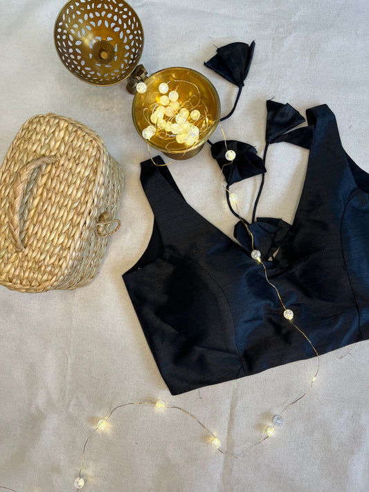 Midnight Black Organza Blouse with Exquisite Sequins Embroidery – Timeless Elegance