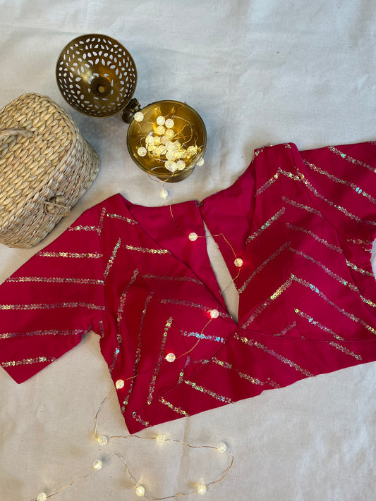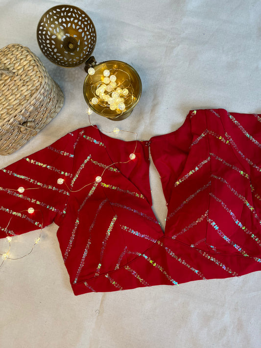 Cherry Red Organza Blouse with Lustrous Sequins Embroidery – A Radiant Statement of Elegance