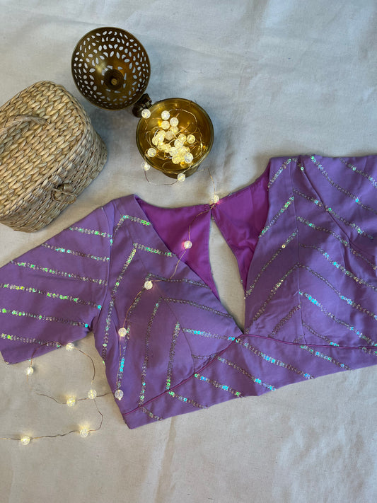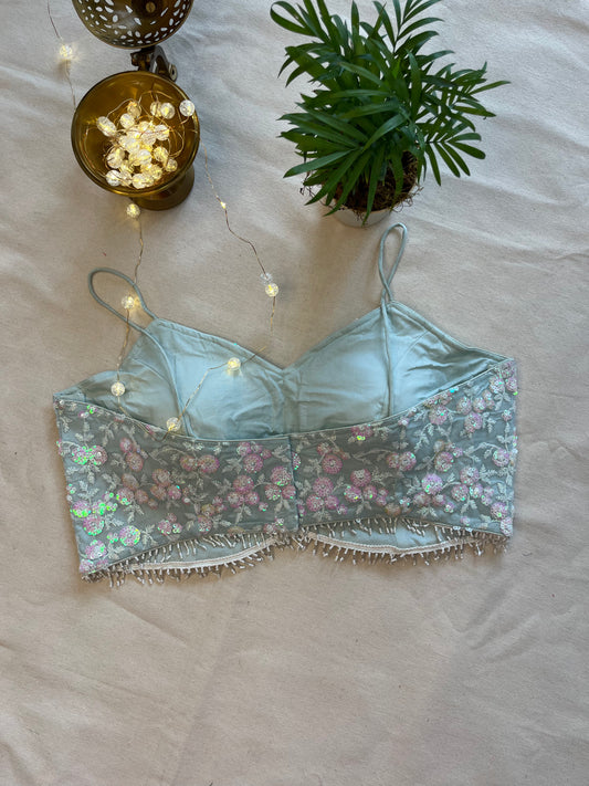Cyan Blue Noodle Strap Blouse in Net Fabric with Sparkling Sequins Embroidery – Oceanic Elegance