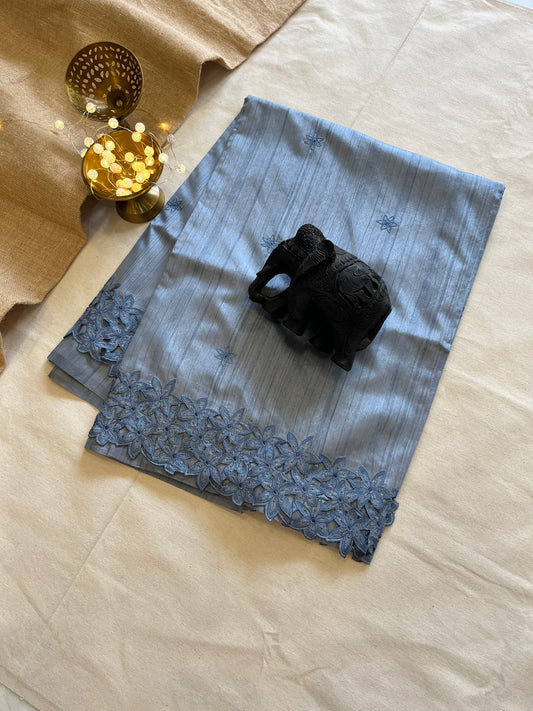 Elegant Tussar Embroidery Saree – Handcrafted Beauty